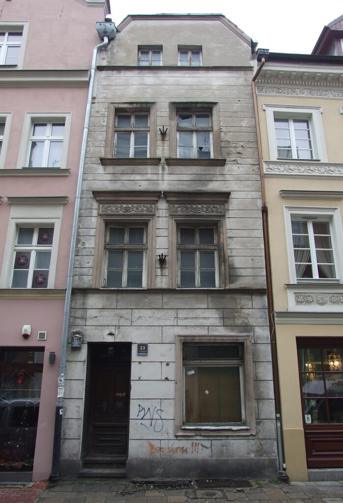 Początki kamienicy z numerem 23 datowane są na przełom XIV/XV stulecia – taki wiek murowanych fundamentów określony został w wyniku przeprowadzonych w 2017 roku badań archeologicznych. Prawdopodobnie budynek miał pierwotnie murowane przyziemie i zadaszoną kondygnację naziemną w konstrukcji drewnianej.